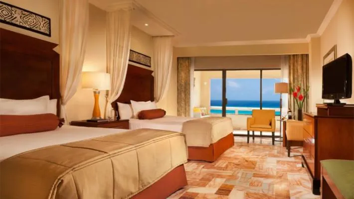 3 Cascading resort pools with ocean views including one zero grade entry pool with waterfalls and swim-up bar
